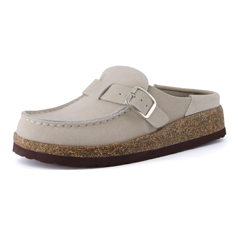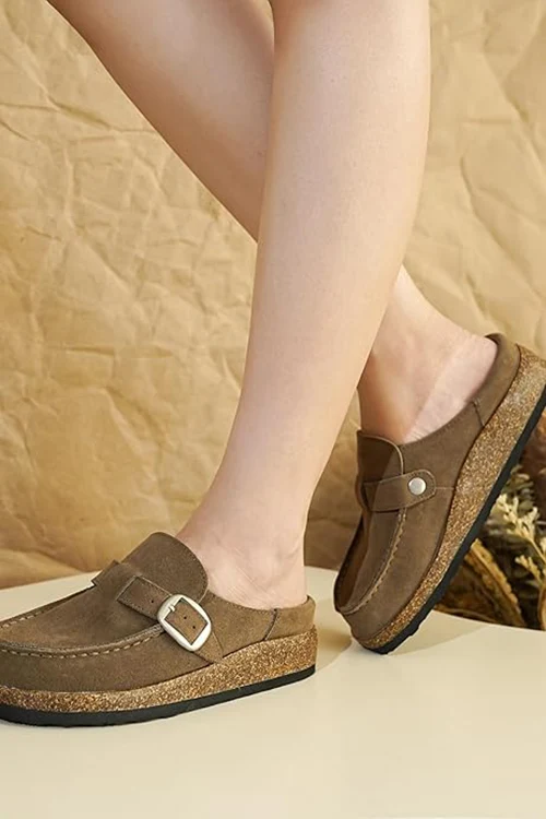 Podeszwa chodaków TIANXIU Cosy Stitching Clogs wykonana jest z brązowego korka, naturalnego materiału, który nie tylko posiada doskonałe właściwości amortyzujące, ale także skutecznie rozprowadza nacisk stopy, pozwalając Ci doświadczyć najwyższego komfortu nawet podczas długotrwałego stania lub chodzenia. Dodatkowo materiał korkowy zapewnia pewną oddychalność i właściwości antybakteryjne, utrzymując wnętrze buta w czystości i suchości, a także zapewniając solidną ochronę zdrowia stóp.