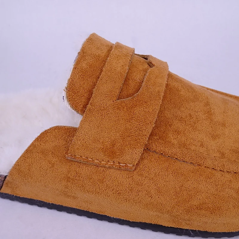 Projekt chodaków genialnie łączy brązowe szwy na krawędziach, podkreślając delikatny kontur i ukazując wyjątkowy kunszt. Ozdoba w postaci metalowej klamry nie tylko ułatwia zakładanie i zdejmowanie, ale także dodaje szczypty mody, sprawiając, że ten pantofelek wyróżnia się prostotą, nie tracąc przy tym swoich walorów.