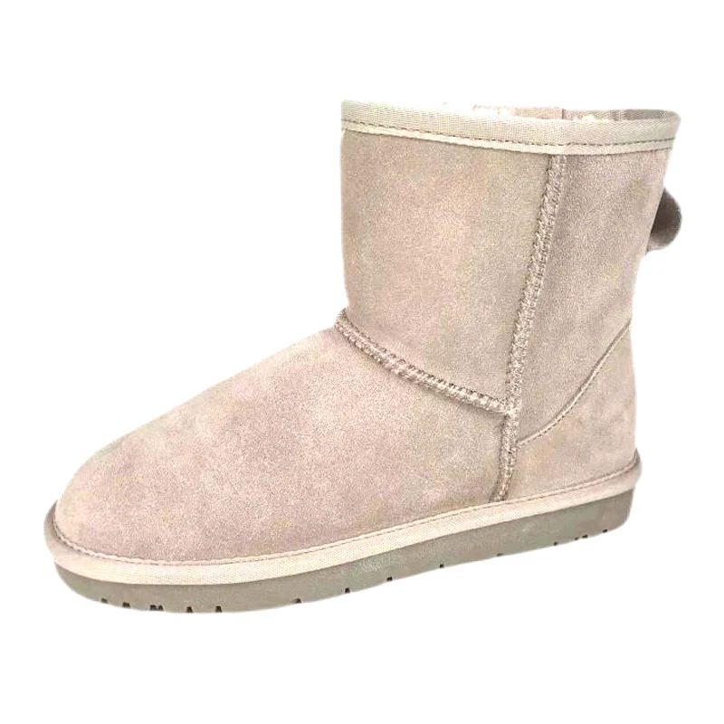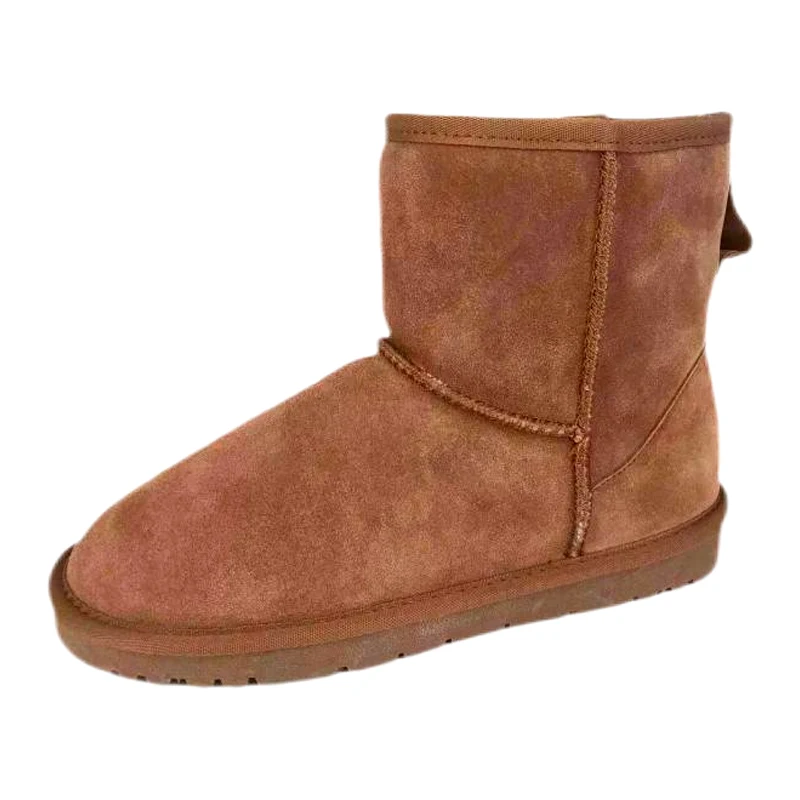 Damskie śniegowce do kostki ze skóry bydlęcej zamszowej