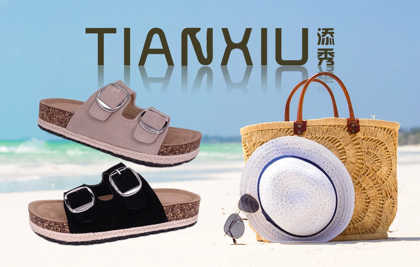 Ogólny projekt sandałów TIANXIU jest prosty i elegancki, z gładkimi liniami, które ukazują dyskretne wyczucie mody. Dwie szerokie metalowe klamry służą nie tylko jako dekoracja, ale także służą do mocowania sznurówek, dzięki czemu są piękne i praktyczne. Sandały TIANXIU z dwiema klamrami Ramie Bottom Footbad nadają się do różnych scenariuszy, w tym do codziennego noszenia w domu, spacerów na świeżym powietrzu i zajęć w pomieszczeniach. Jego modne i wszechstronne właściwości sprawiają, że jest to również preferowany wybór podczas podróży, wakacji i innych okazji.