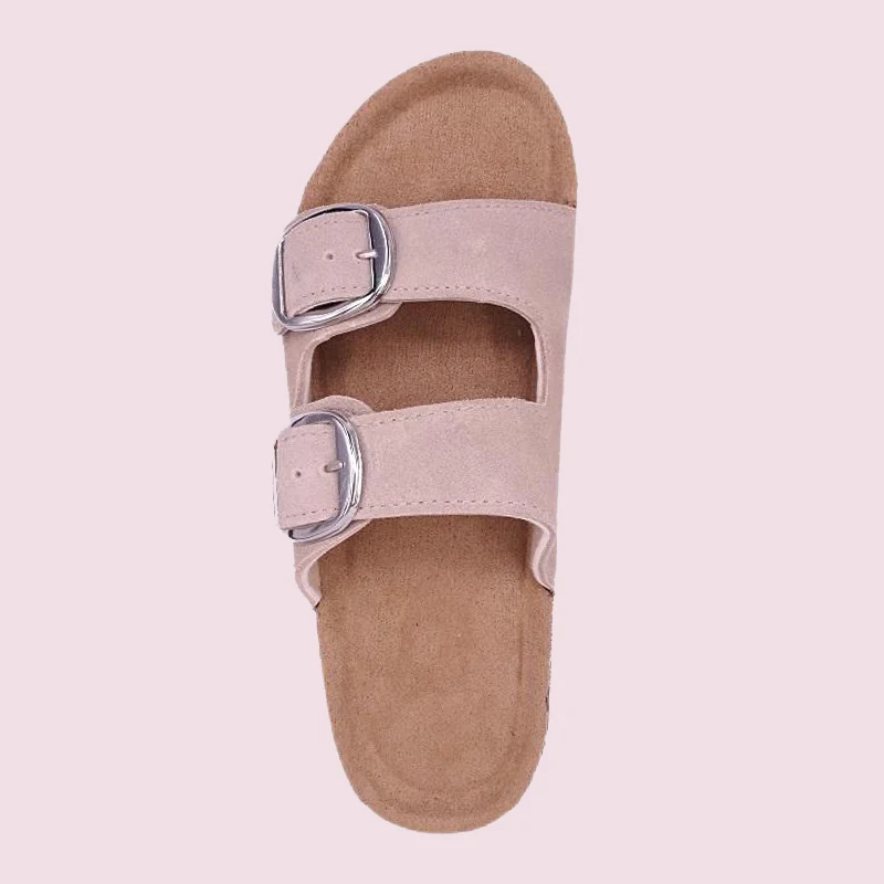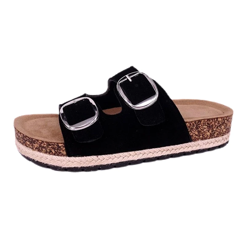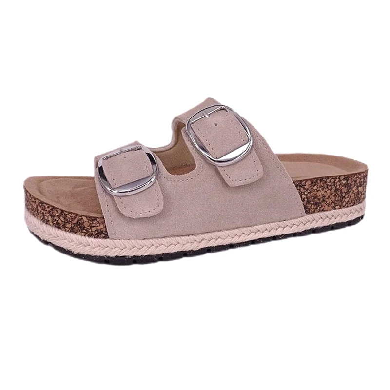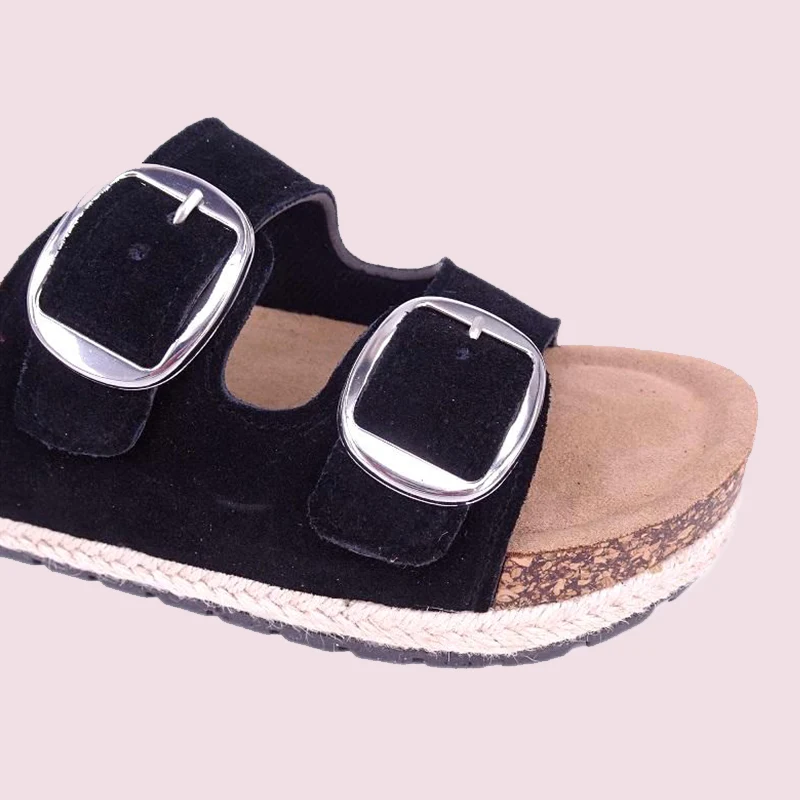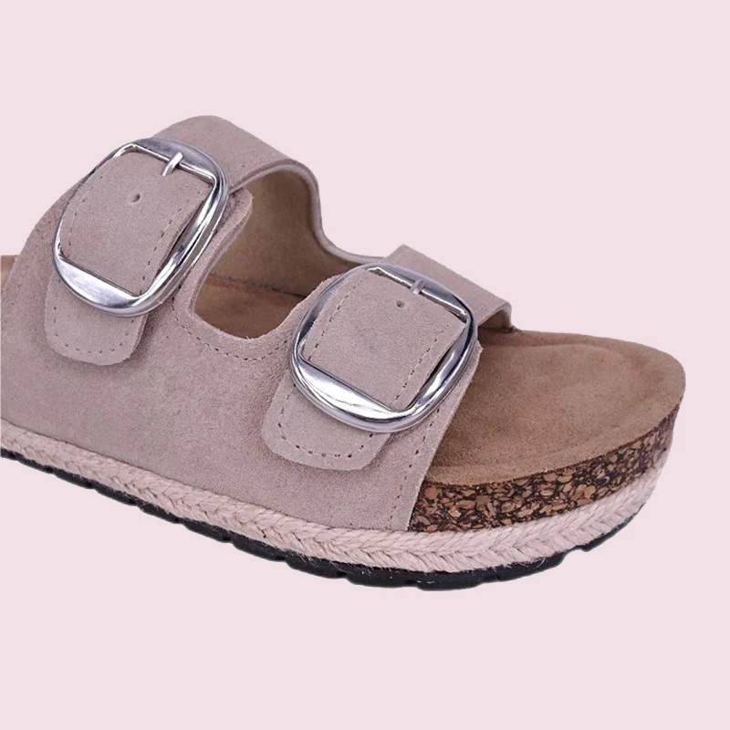Damskie sandały z prawdziwą zamszową wkładką, zapinane na dwie klamry