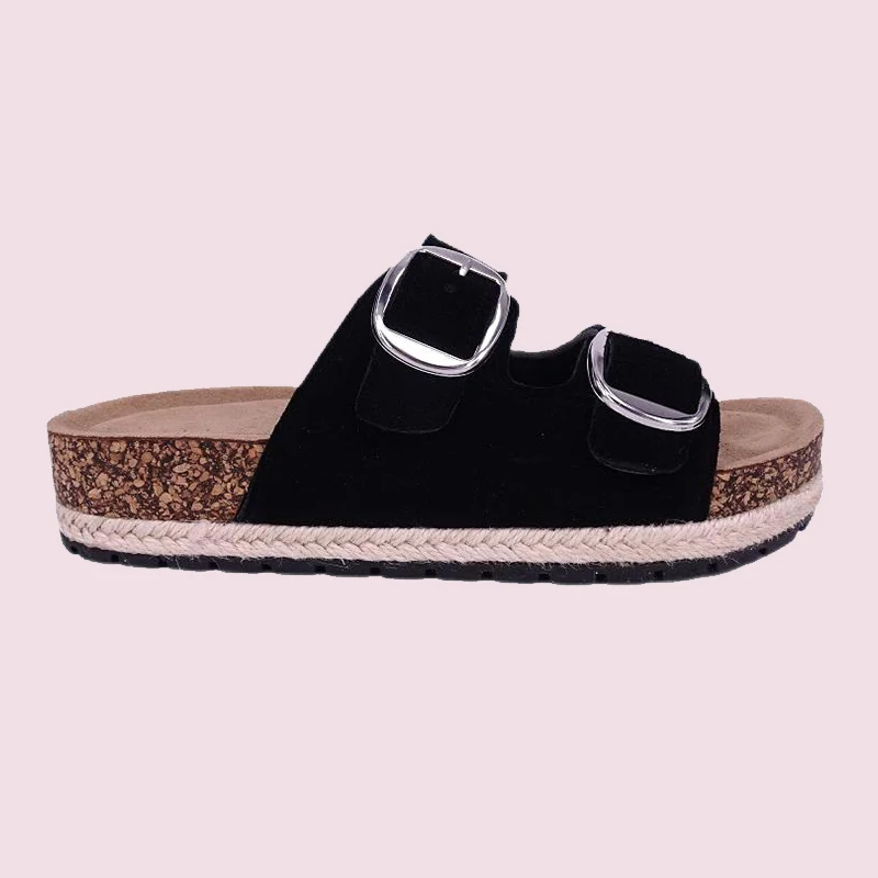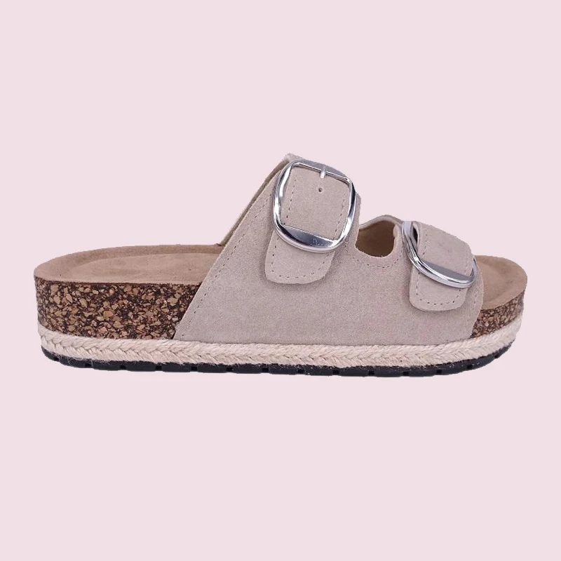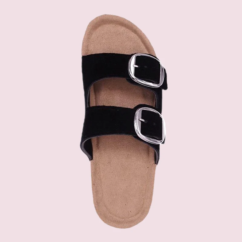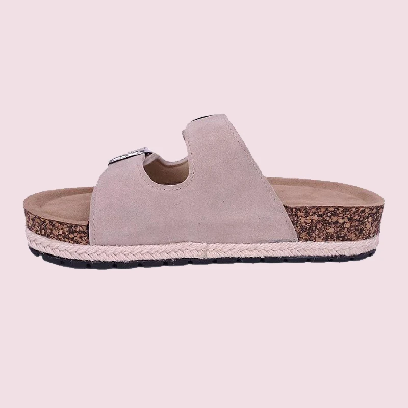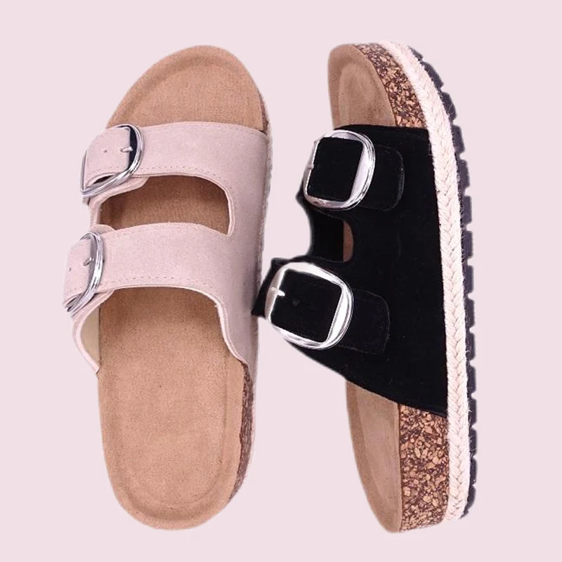 Damskie sandały z prawdziwą zamszową wkładką, zapinane na dwie klamry