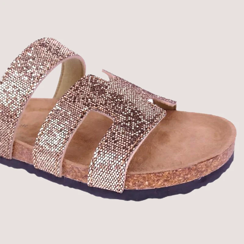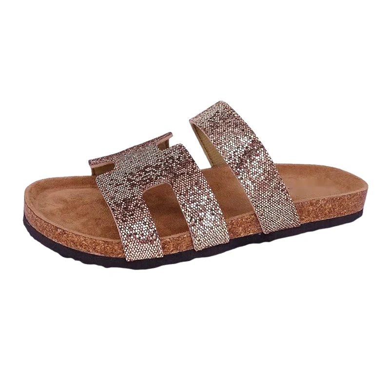Pantofle korkowe w stylu H, charakteryzujące się unikalnym, metalicznym brokatem, wysokiej jakości materiałami i wygodną trwałością, cieszą się ogromną popularnością wśród konsumentów. To coś więcej niż tylko modny pantofel domowy, to niezastąpiony towarzysz w czasie wolnym. Wybierz korkowe pantofle w stylu H i pozwól sobie na każdy krok
