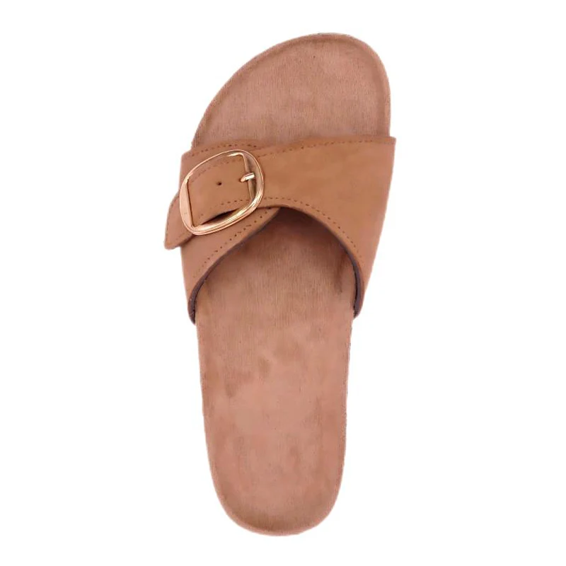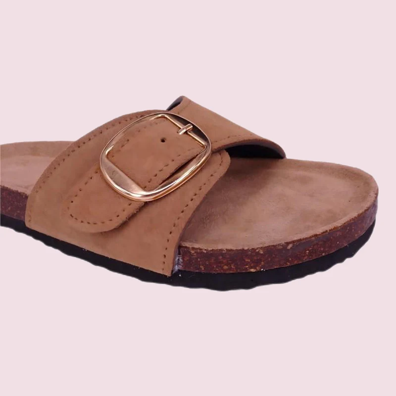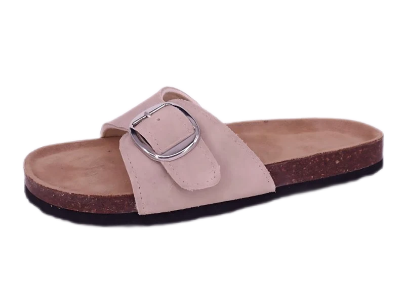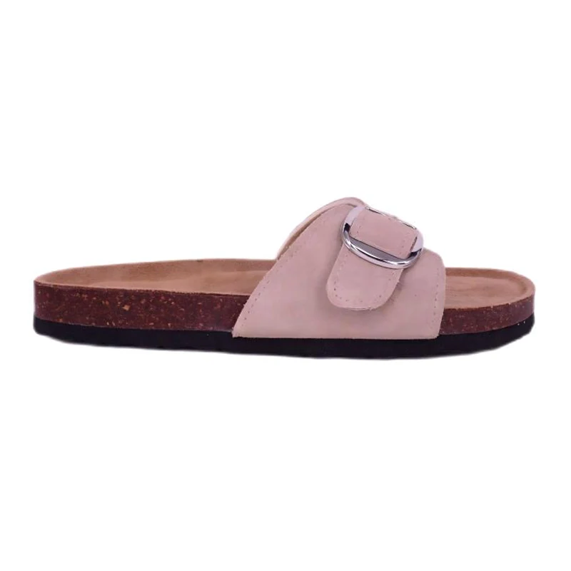 Damskie sandały z prawdziwą zamszową wkładką, zapinane na dwie klamry