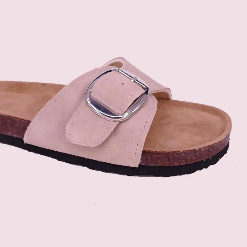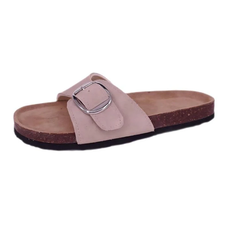 TIANXIU Damskie sandały z prawdziwej skóry zamszowej z paskiem i jedną klamrą stały się popularnym wyborem na rynku ze względu na ich minimalistyczny i modny design, wygodne i trwałe materiały, a także wszechstronne możliwości noszenia. Jeśli szukasz pary kapci, które są zarówno piękne, jak i praktyczne, to ten stylizowany pantofel z korka będzie zdecydowanie najlepszym wyborem.