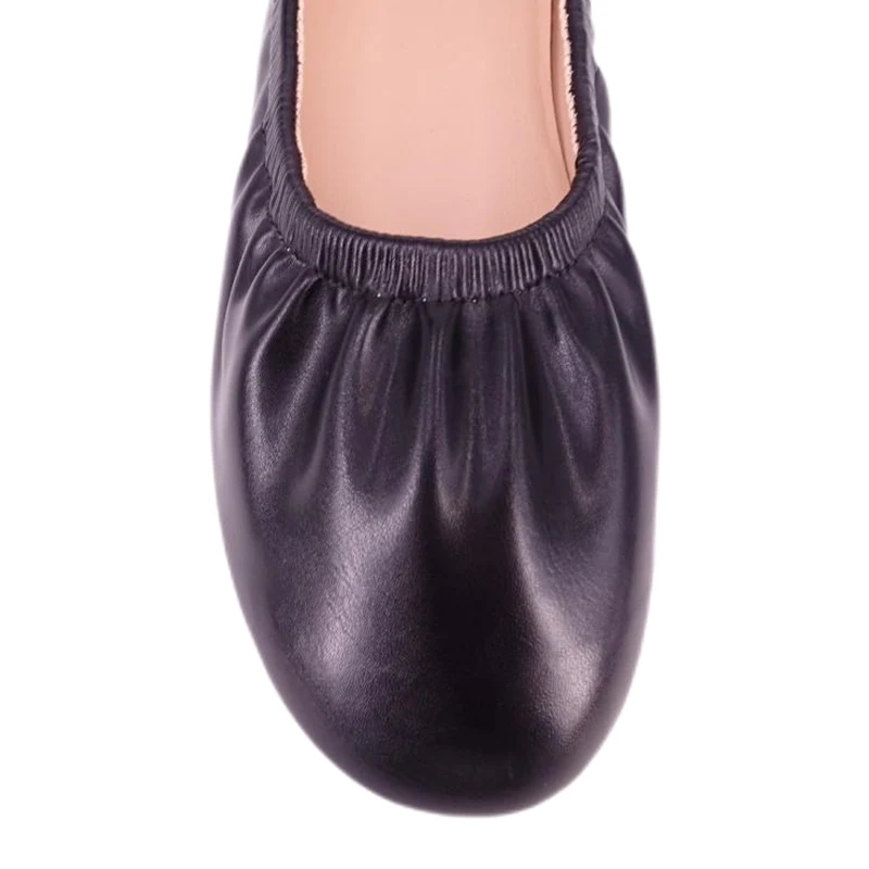 Baleriny TIANXIU z gumką na przyszwie wyróżniają się klasycznym i eleganckim designem, dzięki czemu są idealnym wyborem zarówno do noszenia na co dzień, jak i na oficjalne okazje. Przyszwa wykonana jest z miękkiego, błyszczącego materiału, który został poddany specjalnej obróbce, aby uzyskać subtelny efekt plisowania, który nie tylko dodaje butowi głębi, ale także nadaje mu delikatną i elastyczną teksturę.